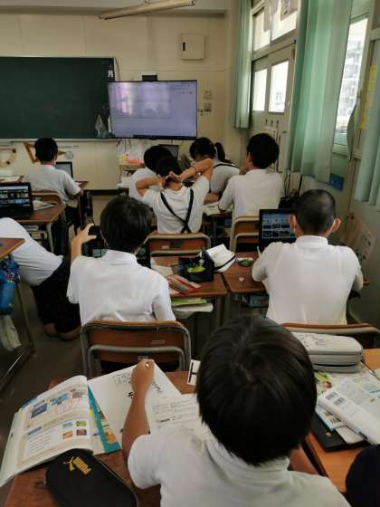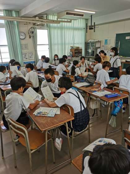 完成した夏の出来事のダイヤリーをもとに班で発表しあいっこしています。
