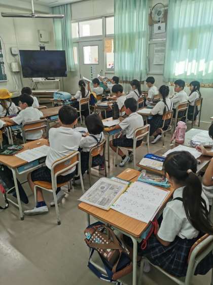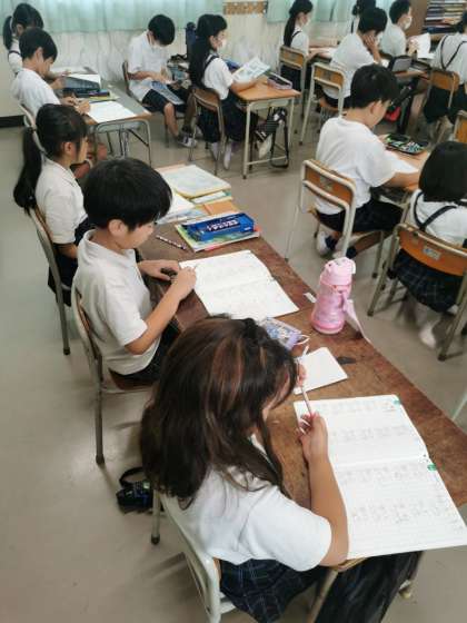 計算問題の答え合わせをしていました。日々の積み重ねです。全問正解での人が次々と手を挙げていました。