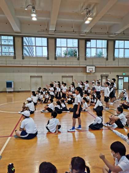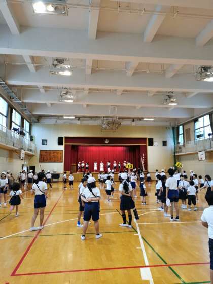 今朝の児童集会はじゃんけん大会。集会委員とのじゃんけん対決でした。