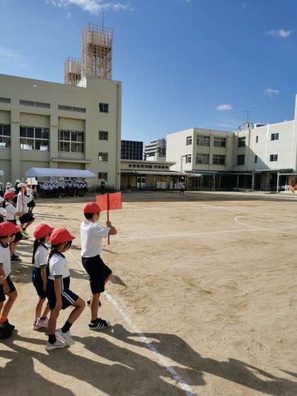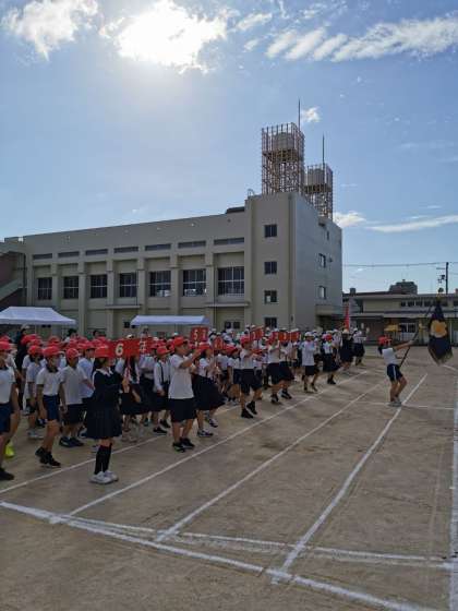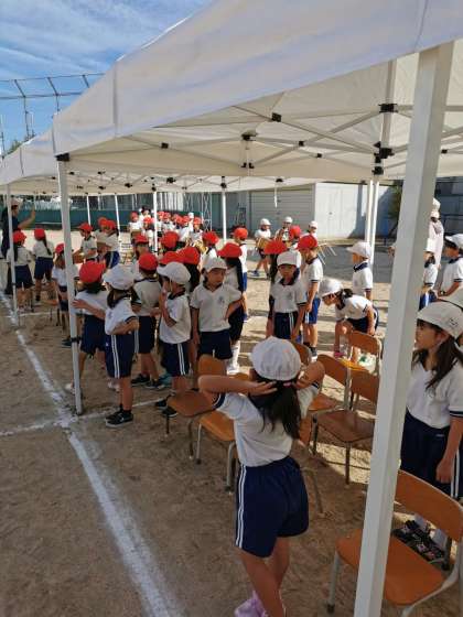 本番と同じように開会式の練習をしました。とてもいい天気で、当日もこれくらいの晴天だったらと願うばかりです。
