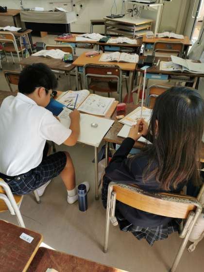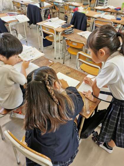 温度計で学校のいろんな場所の気温をはかっています。一番温度が高かったのは多目的室だそうです。