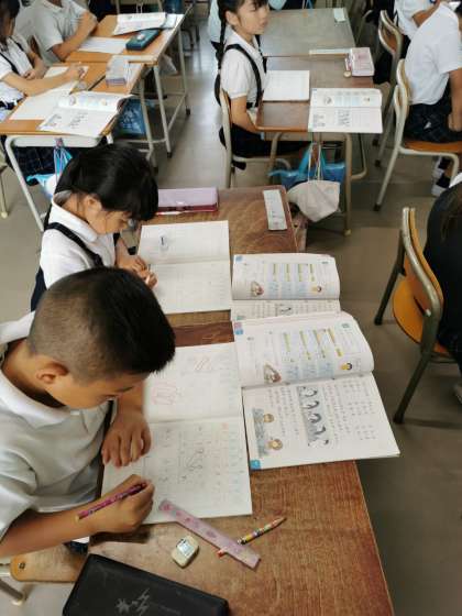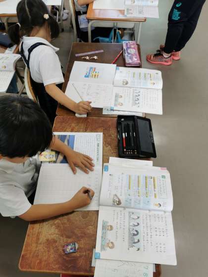 繰りあがりの足し算を練習しています。同じような問題が出たときでもさくらんぼを作って10を作るようにしています。