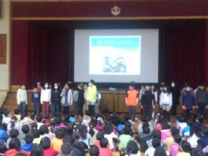 木曜日は、児童集会です。自然科学クラブから活動紹介がありました。