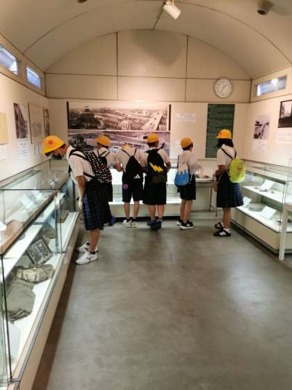 昼食のあと、碑巡りをして、爆心地に近い本川小学校にある平和資料館を訪れました。