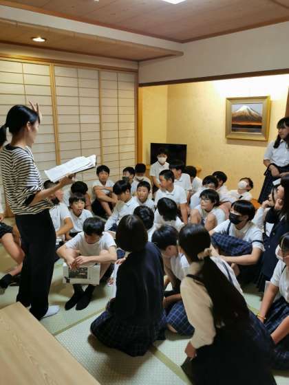 見学が終わって宿へ。部屋割り、避難訓練をしたあと、ケニアや日本の小中学校と交流会を行いました。