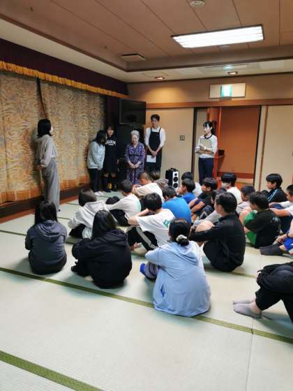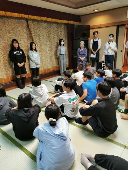 夕食の用意が終わったあと、宿の方にご挨拶しました。毎年歌島小学校の修学旅行でお世話になっています。