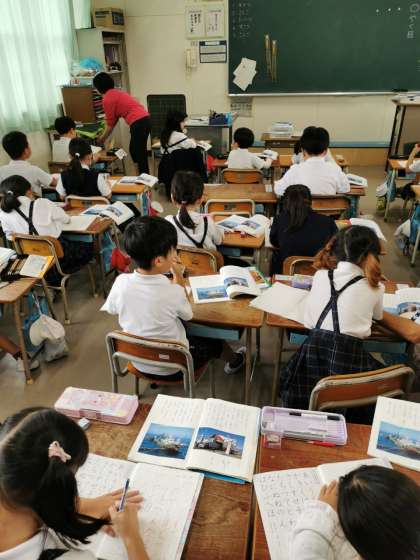 いろいろな船の役目を本文から探しています。それぞれの船がどんな役目なのか、どの言葉に注目したらいいのかを確認しています。