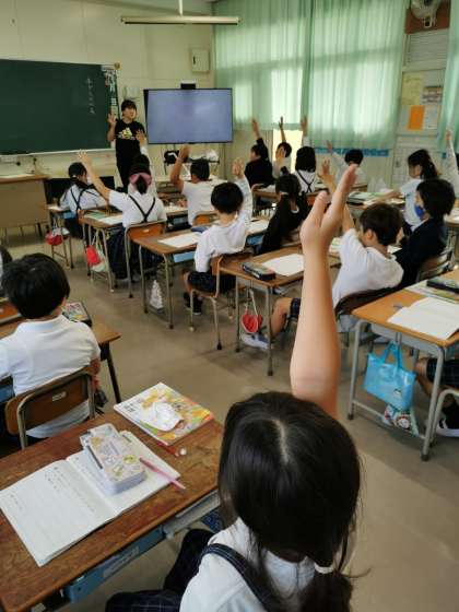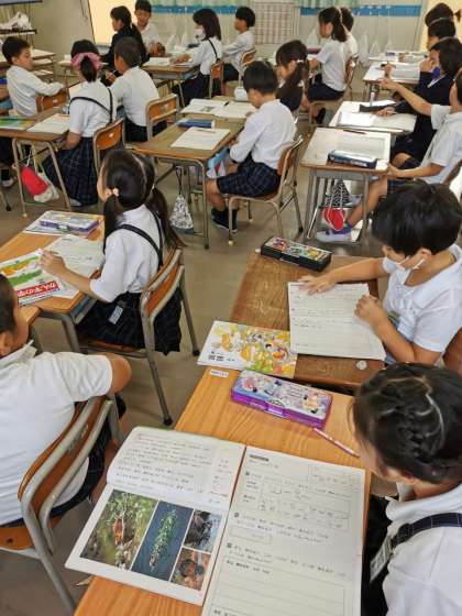 「本でしらべる」という学習をしています。調べてみたい動物をあげて、その動物について調べてみたいことを考えています。