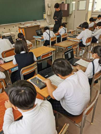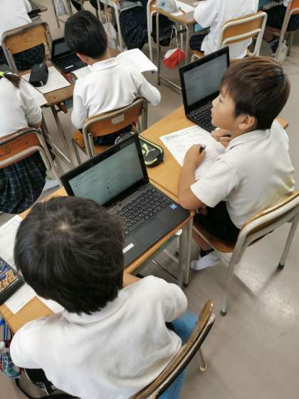 計算のきまりを使った問題をたくさん解いているところです。用意されたプリントをどんどん解き進めています。