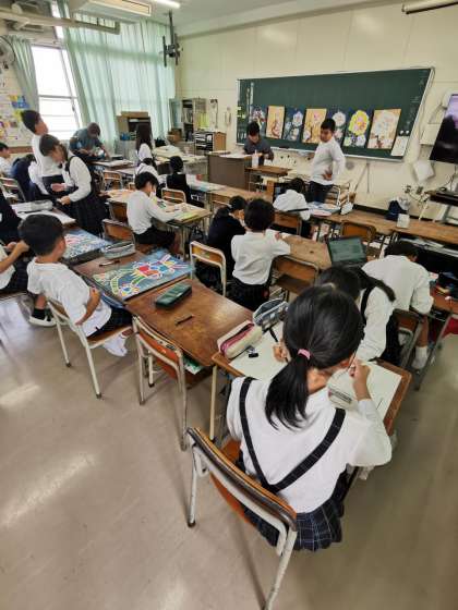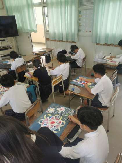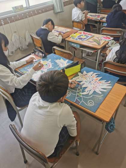 花の制作が続いています。細かな飾りの部分を絵の具やペンでしています。