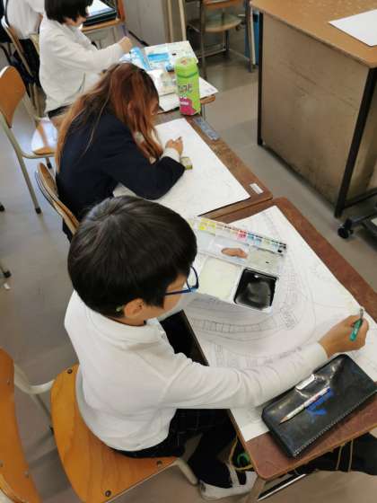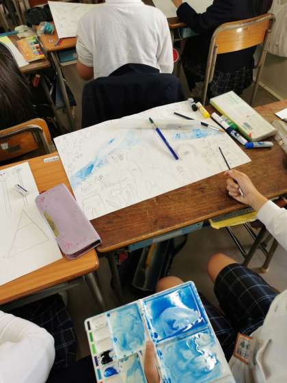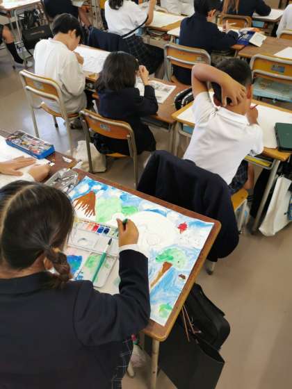 遠近を意識した絵を描いています。手前を大きく、奥を小さく描くようにしています。
