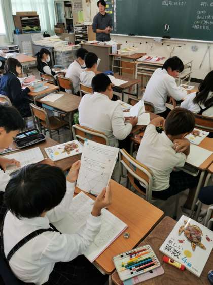 いろんな形を仲間分けしているところです。平行の辺が一組、二組、その他の三種類で分けています。