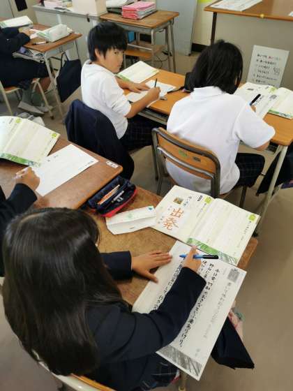 古文をお手本にまぶはなぞって、続いて清書を書いています。