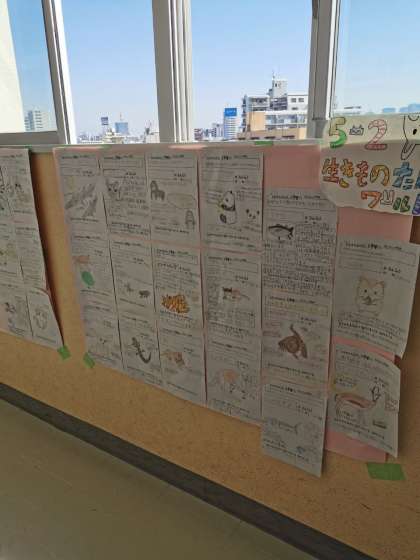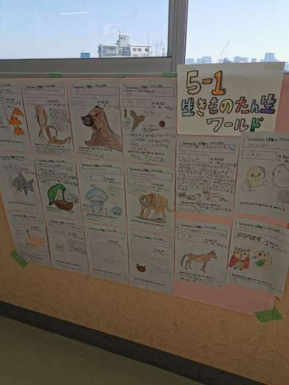 ヒトの誕生やいろんな動物の誕生について学習したことをまとめました。生き物誕生ワールドとして掲示しています。いろんな動物のことがわかりやすく書かれています。
