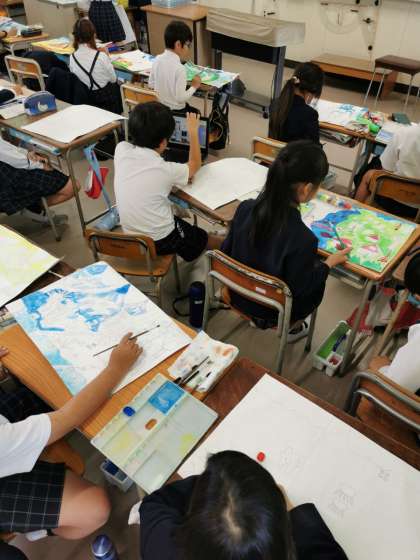 引き続き水彩絵の具で着色しています。水の量の加減に注意して塗っています。