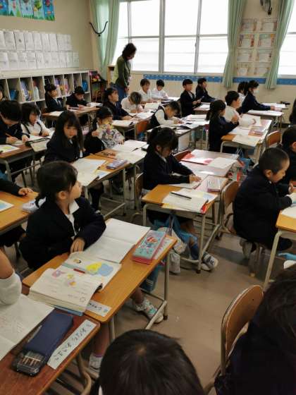 ことばであそぼうという学単元の学習をしています。だじゃれをつくっているところです。かんたんそうでなかなか難しいようです。パンがパンパン、ろうかをはしろうかなどなどいろいろと考えだしていました。