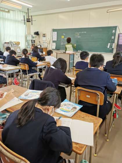 流れる水のはたらきの学習をしています。曲がる川の様子について、先日の実験の様子や動画をふまえてまとめているところです。