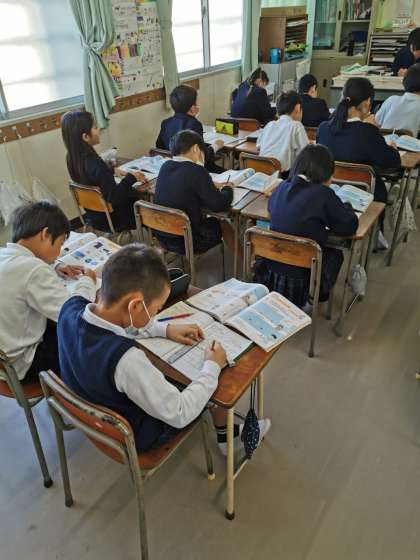 ものの温度と体積の学習のまとめをしています。実験したり、考えたりしたことを表にまとめています。