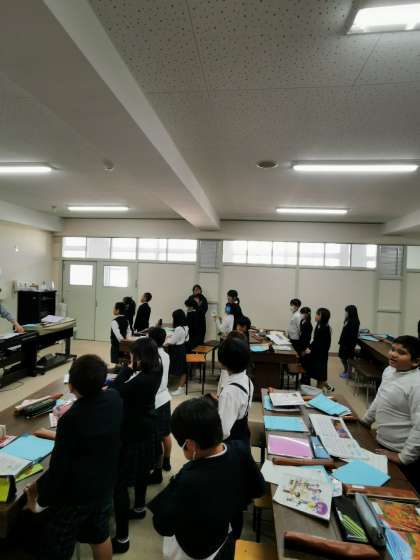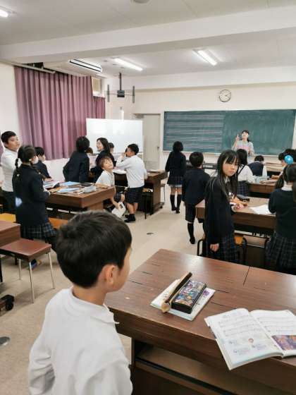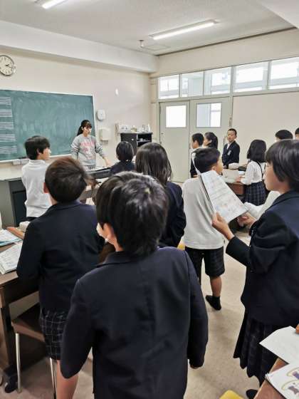 もみじの二部合唱をしています。片方につられるということがあったり、お互いに声をそろえるということで一生懸命になったりとなかなか盛りあがっています。