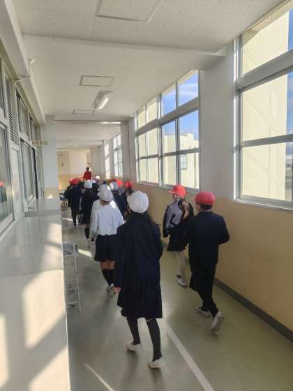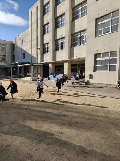 地震が起きて避難をしたあと、津波が来るという想定で訓練をしました。静かに素早く移動できました。いつ起きてもおかしくないので日頃からしっかり訓練しておくことが大切です。