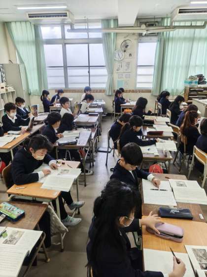 「カミツキガメは悪者か」を読み進めています。段落ごとに本文の要約をしています。総合的読解力の学習もしているので書かれている内容をまとめることにも慣れてきているようです。