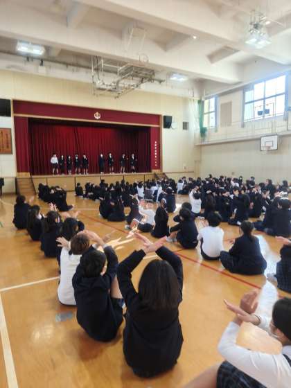 今日の全校朝会は学校クイズでした。創立記念日や先生のことなどいろんな◯?クイズが出題されました。