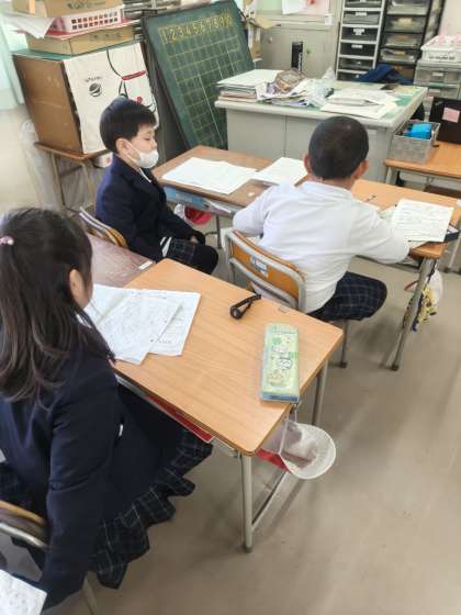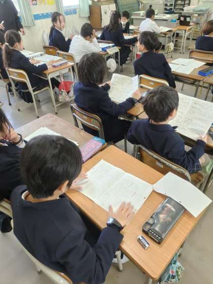 今度の参観で発表する練習をしています。時計で何秒かかるか測りながら練習しています。