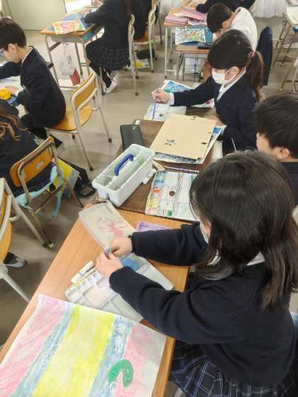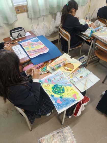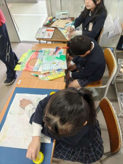 スチレン版画をしています。スタンプのようにいろんな模様を並べています。