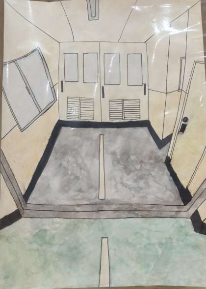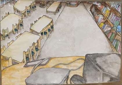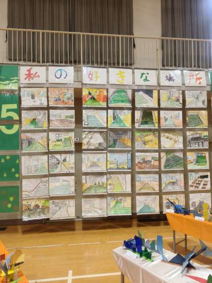 5年生は自分の好きな場所を校内で見つけて描きました。色を作るのに苦心していましたがとてもいい雰囲気に仕上がっています。