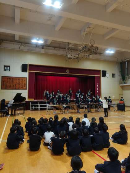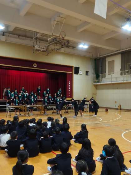 最後に6年生から合奏「栄光の架け橋」。みんなで聴き入りました。