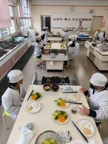 調理実習をしました。温野菜と白玉団子をつくりました。てきぱきと進めることができました。
