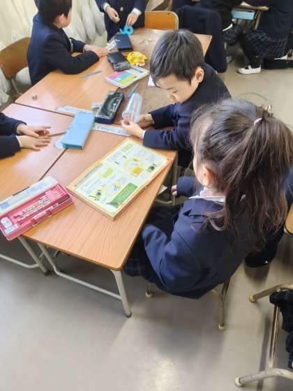 班で話し合いをしています。それぞれの班で出し物をするようで、相談したり練習したりしていました。