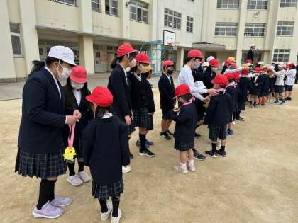 全学年のお兄さんお姉さんに見守られながら、全員で「よろしくお願いします」と上手にあいさつをしました。