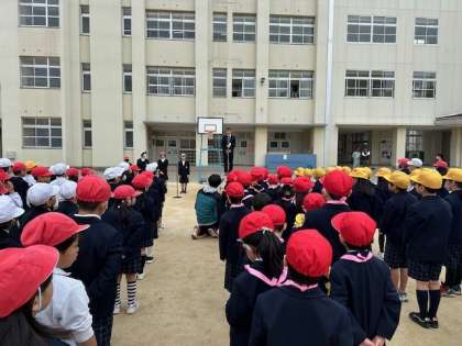 その後、全校児童で歌島小学校の校歌を元気に歌いました。