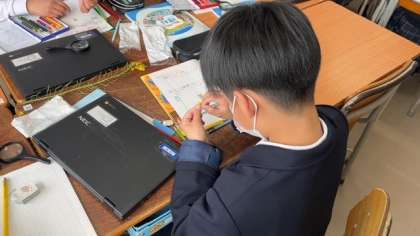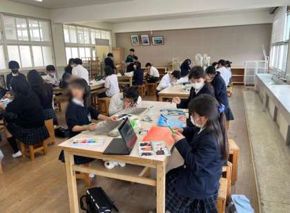 先週に大野川緑陰道路に出かけて自分たちで撮影をした桜を絵に表します。