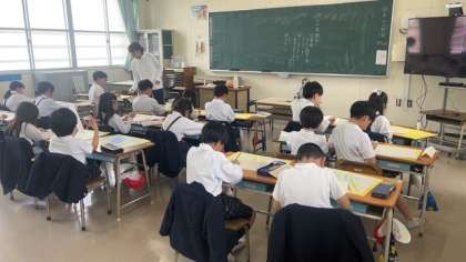 6年生に手伝ってもらって給食の食缶を運び、配膳をしてもらっているところです。もうすぐ自分たちだけでの準備が始まります。毎日毎日が新しいことの連続です。