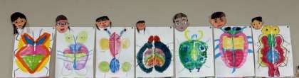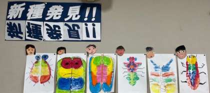 半画用紙の片面に絵具をのせて折って開いてみると・・・。