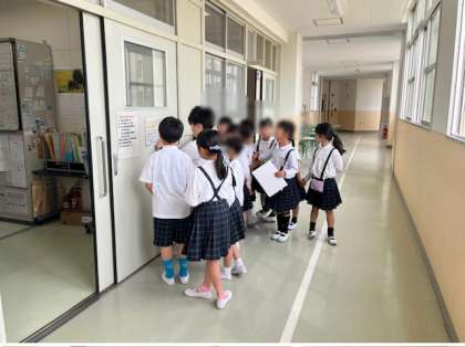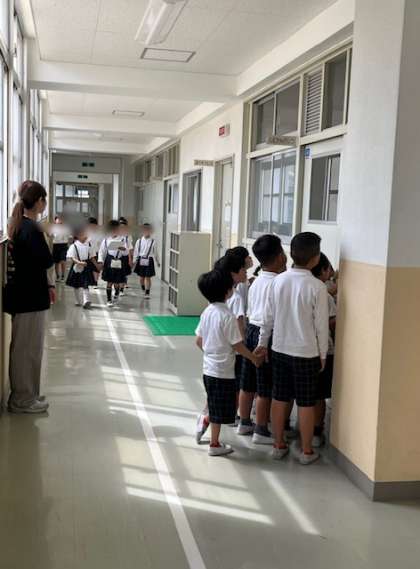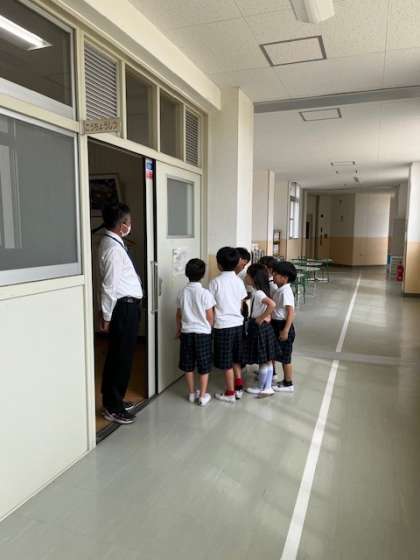 「こうちょうしつでは、こうちょうせんせいが、おしごとをしています。」
