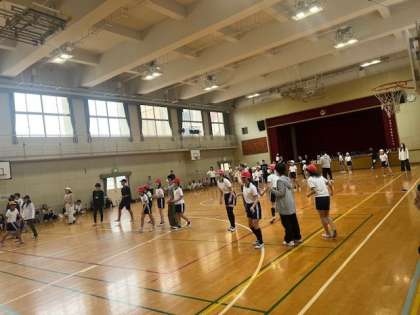 雨天のため、あいにく全学年での親子ドッジボールはできませんでしたが、6年生のみ体育館で行いました。