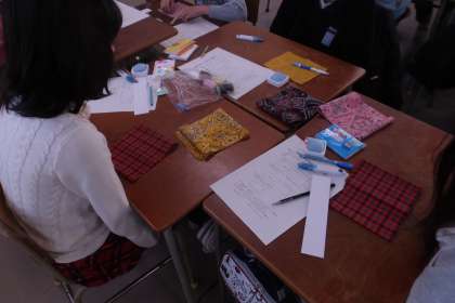本日、各組2時間ずつ手芸講習会が行われました。3人の講師の方々にとても丁寧に教えていただき、素敵なポケットティッシュカバーをつくることができました♪