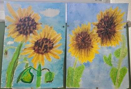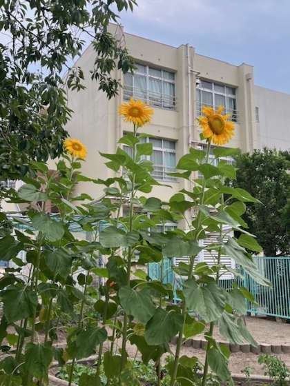 学習園に咲くひまわりもぐんぐんと成長し、2年生の背丈を追い越しています。