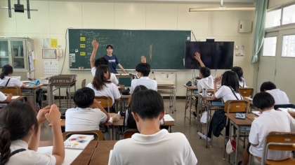 導入でトランプゲームをし、最小公倍数を見つけた子どもたち。それを手がかりにして、小数や分数で表された比を簡単にする方法を紐解きました。