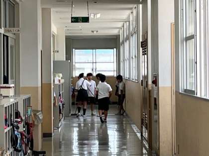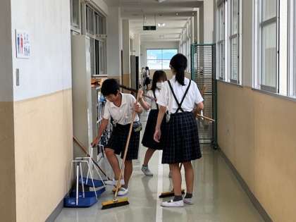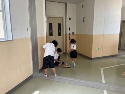 ごみが溜まったら、さっと「ちり取り」を差し出して、協力して廊下をきれいにします。