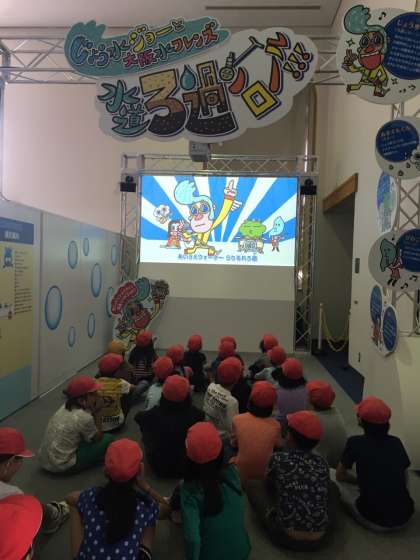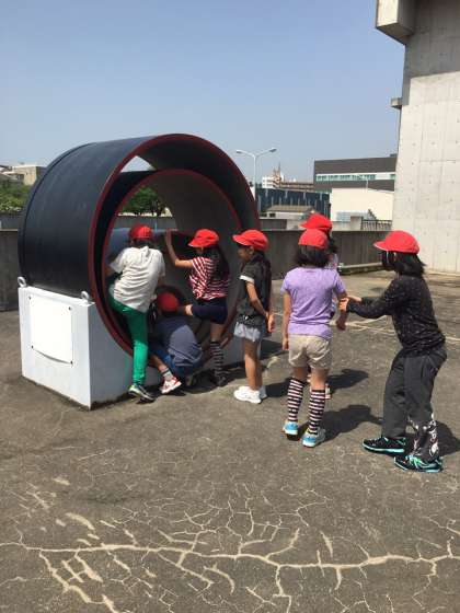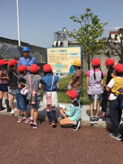 5月2日(月)天候にも恵まれ、職員の方に広い浄水場の中を案内していただき、淀川の水がきれいになっていく仕組みを学習しました。実物大の大きな水道管の中を通ったり、給水車に入れる水を出してもらったりしました。また、楽しいじょう水ジョーが水道ろ過ンロールを歌って紹介してくれました。