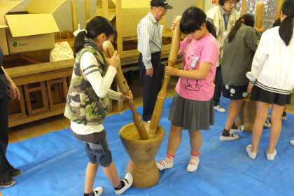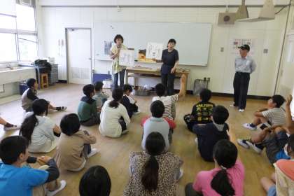 弥生時代の人々の暮らしに思いをはせながら、楽しそうに授業を受けていました。