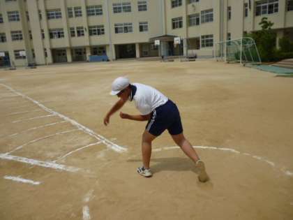 6年生が立ち幅跳びと、ソフトボール投げをしました。