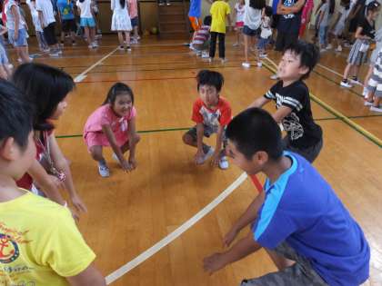 鬼さんのかけ声に合わせて、とぶ生き物のまねをします。