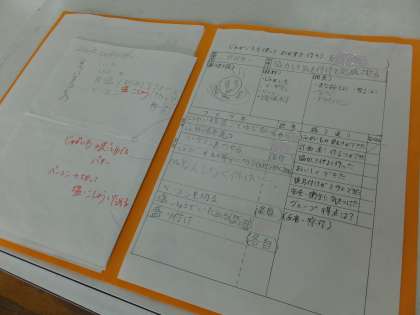 じゃがいも+もう一つの食材を使い、班ごとに違う料理を作りました。
