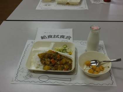 米粉を使用したカレーは、一般的な小麦粉を使用したカレーとは一味違いましたが、みなさんとてもおいしいと、好評でした。こどもたちも、今日はラッキーニンジンやラッキーじゃがいもが入っていると、楽しく食べていました。