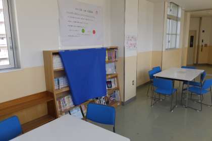 3階と4階の渡り廊下に設置された「きのこ文庫」と「かえる文庫」が